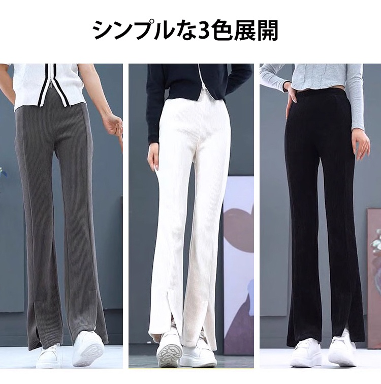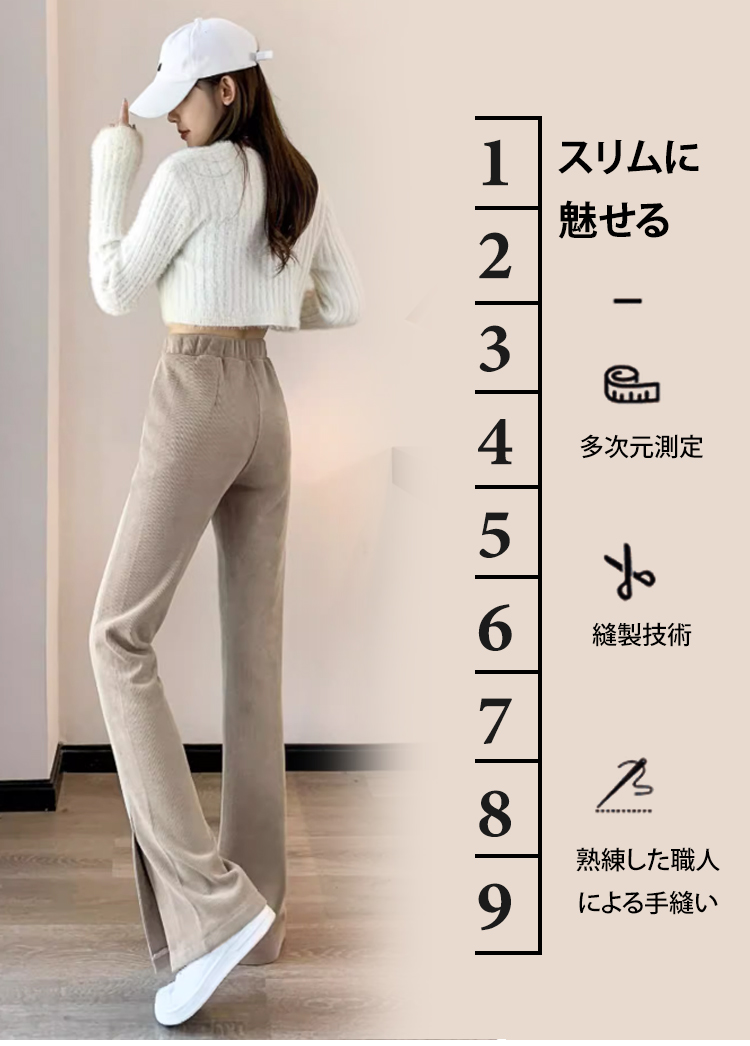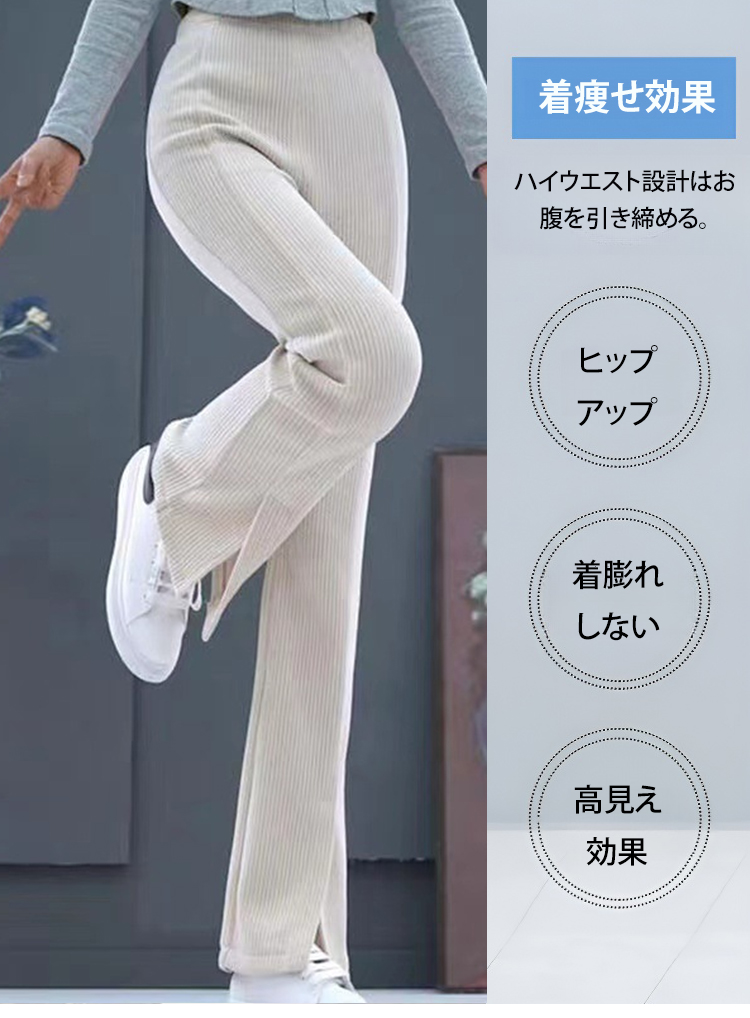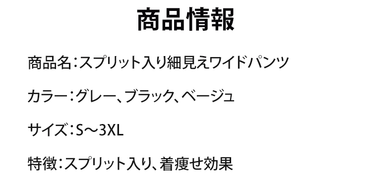 【着痩せ効果】スプリット入り細見えワイドパンツ