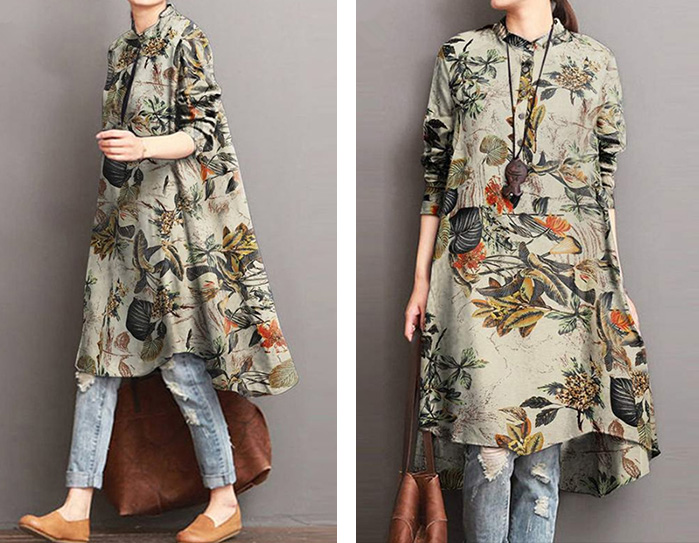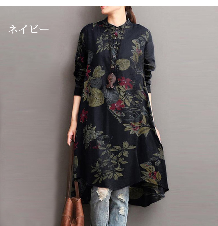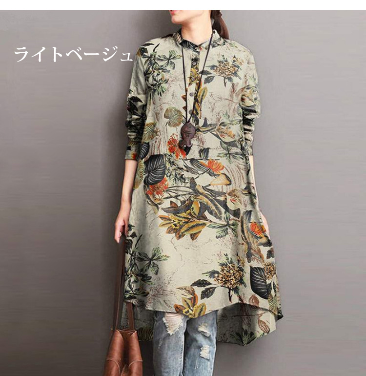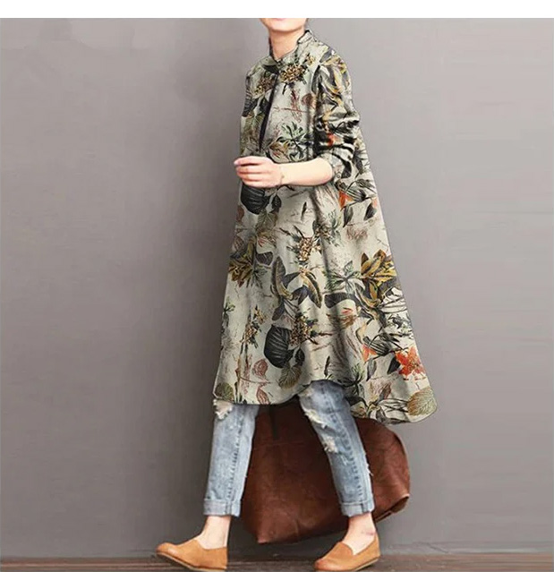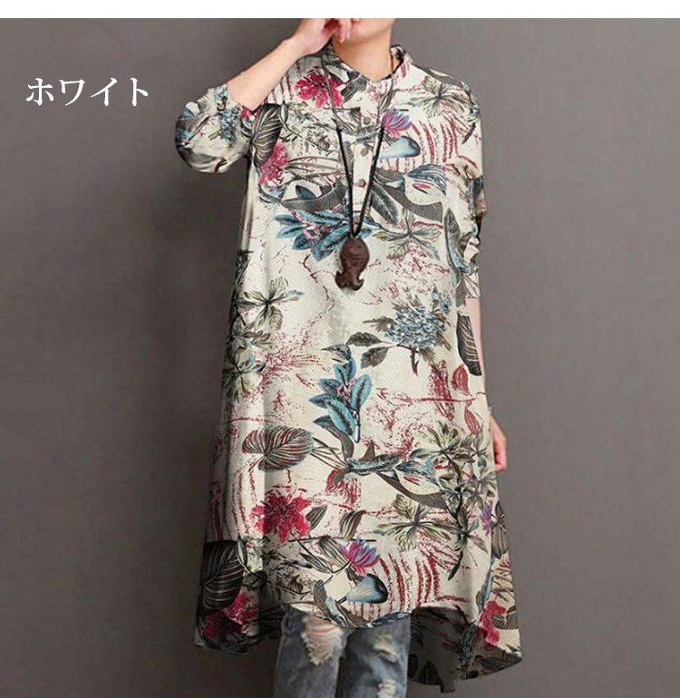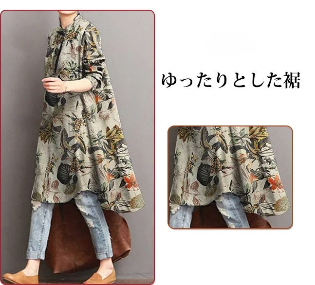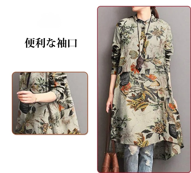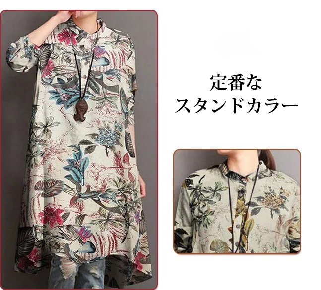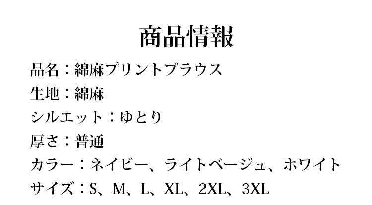 綿麻プリントブラウス 天然綿麻 立体裁断、丁寧なステッチ 快適な体験をもたらす